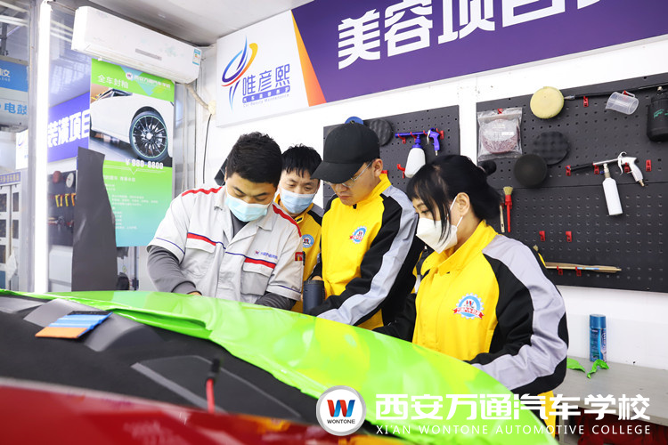 “汽修行业不只是男性的天下,女性也可以做的很好。”杨存莉面对镜头,自信地说。汽车美容实训室里,杨存莉正在专心致志进行贴膜练习,张军利老师在一旁耐心指导,直到看到她动作规范标准,才放心去看另一边的学子。来西安万通已经有半个月时间,这是她每天都在经历的实训课。