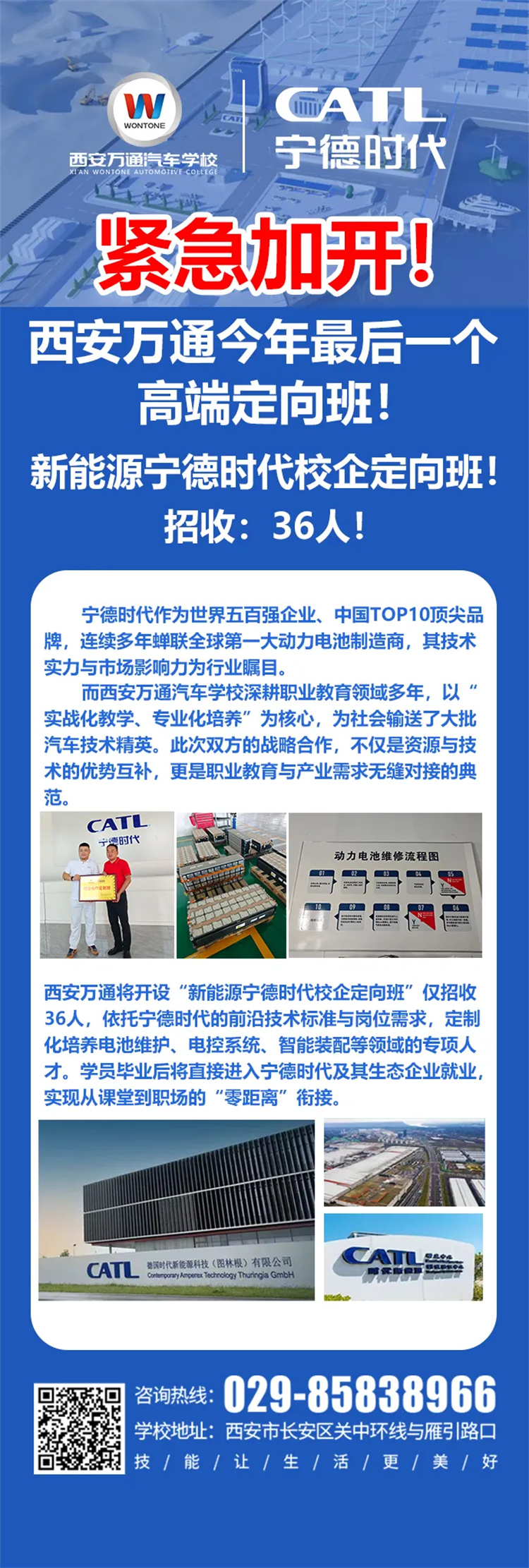 新能源校企合作班 宁德时代 投身朝阳行业,学习顶尖新能源技术,成为未来市场抢手人才!