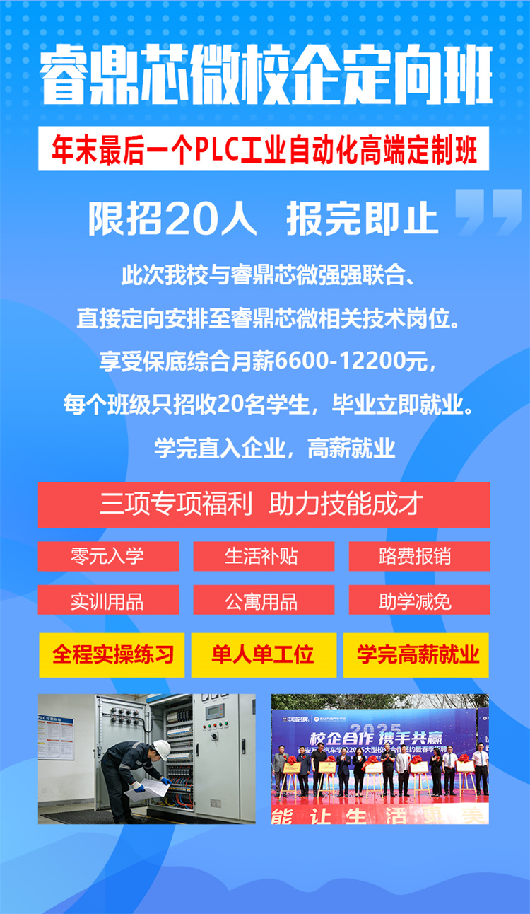 3. 智能制造核心 · 睿鼎芯微PLC定向班 合作企业 :睿鼎芯微(专注于工业自动化与智能控制解决方案的高新技术企业)